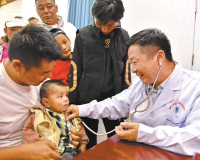 南京醫科大學附屬兒童醫院心臟中心主任莫緒明在西藏拉薩市墨竹工卡縣為兒童體檢。新華社記者 張汝鋒攝