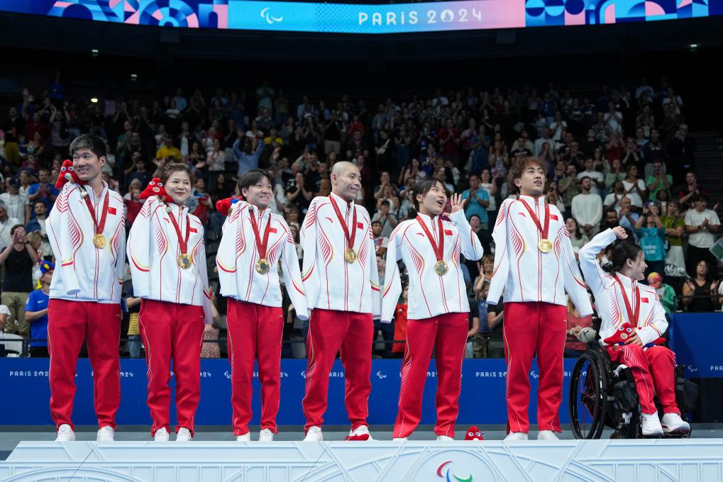30日晚的巴黎拉德芳斯體育館,巴黎殘奧會男女混合4X50米自由泳接力20分決賽上演。諸多目光被中國隊最后一棒選手吸引——他不戴泳帽、剃了光頭,抵達終點時用頭奮力撞向池壁,為中國隊鎖定金牌,并以2分14秒98打破世界紀錄,領先排名第二的美國隊4.01秒。