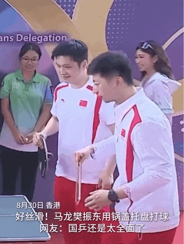 馬龍樊振東拿鍋蓋托盤花式雙打