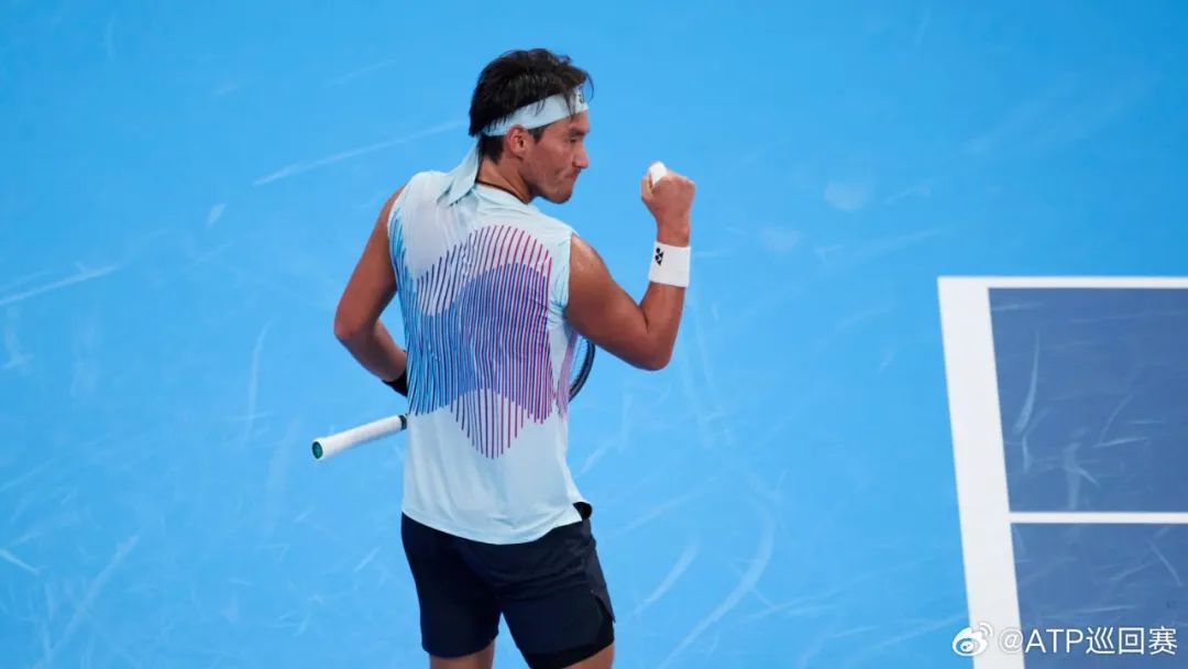 這是一場鏖戰,前兩盤兩人各取一勝,最終布云朝克特憑借極具攻擊力的發球,在第一個賽點直接兌現勝利。