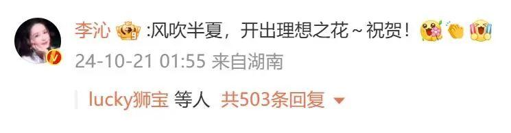 評論區里,演員李沁、王仁君現身為趙麗穎道喜,“風吹半夏,開出理想之花~祝賀!”“爭氣的六妹,努力的麗穎!為你鼓掌,繼續加油!”
