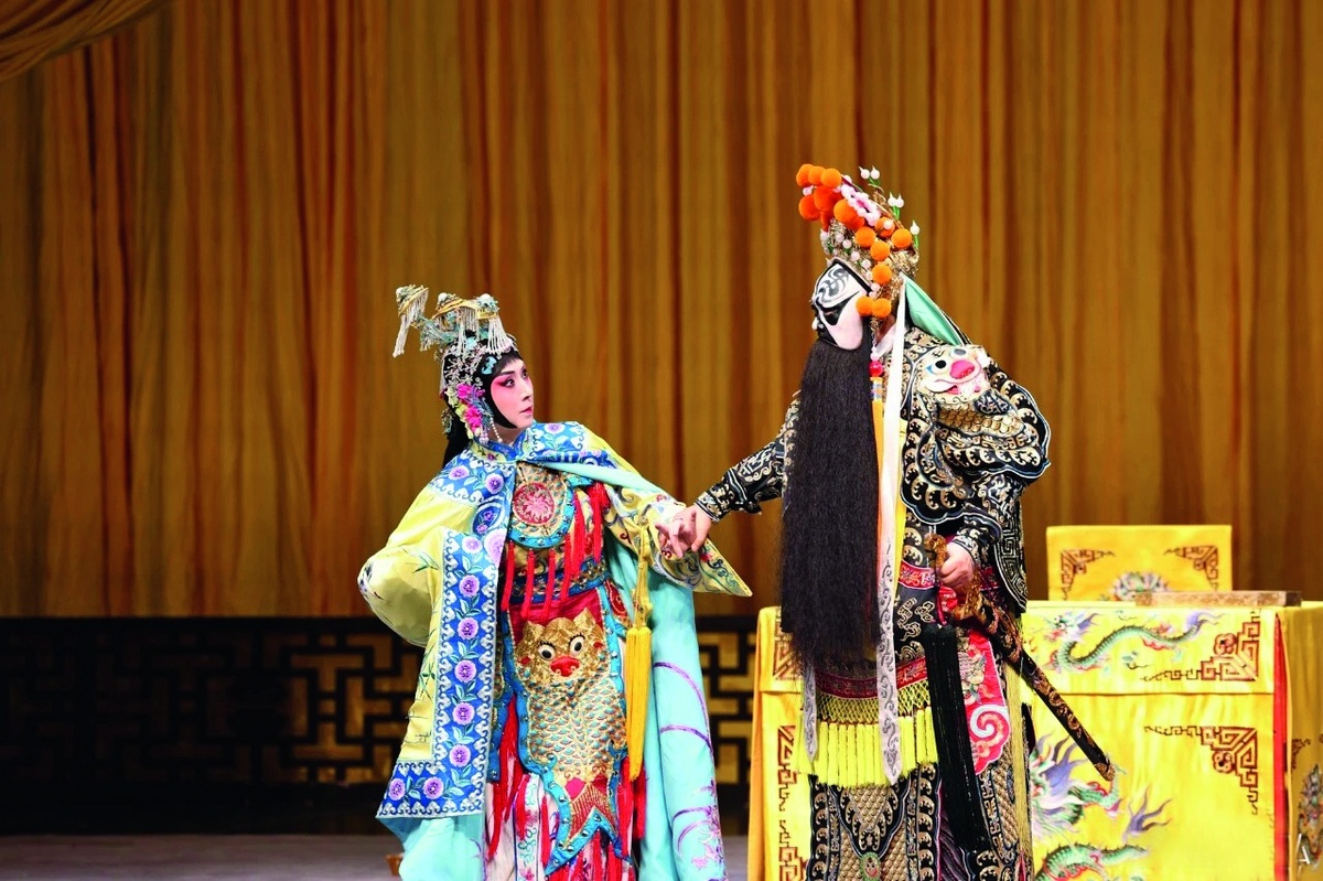 京劇《霸王別姬》中,史依弘(左)飾演剛?cè)岵?jì)的虞姬。