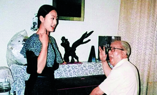 1985年,史依弘開始跟隨梅蘭芳琴師盧文勤(右)學(xué)習(xí)聲腔。