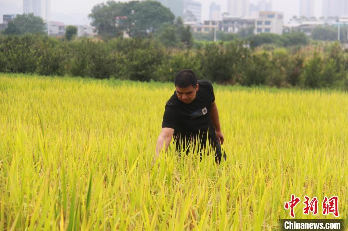 中新網柳州10月23日電 仲秋時節,秋染田野,稻谷飄香。在廣西柳州融安縣長安鎮新安村,曾繁超在田里查看水稻成熟情況。他是融安縣凡超農機專業合作社(下稱合作社)理事長,入選2024年全國第二批農機使用一線“土專家”名錄。