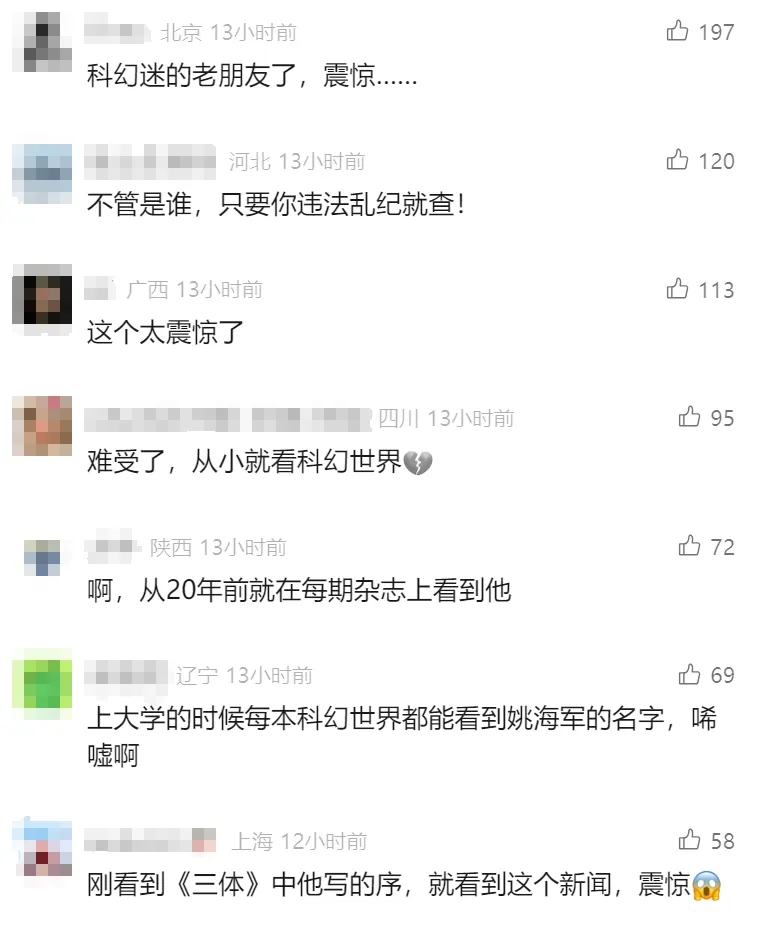 對于姚海軍落馬,不少科幻迷大呼“震驚”“唏噓”,有人表示“不管是誰,只要違法亂紀就查”!