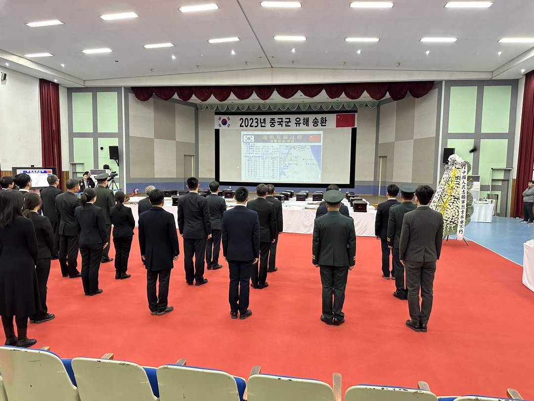 11月22日上午,中韓雙方在韓國仁川“中國人民志愿軍烈士遺骸臨時安置所”共同舉行第十批志愿軍烈士遺骸裝殮儀式。