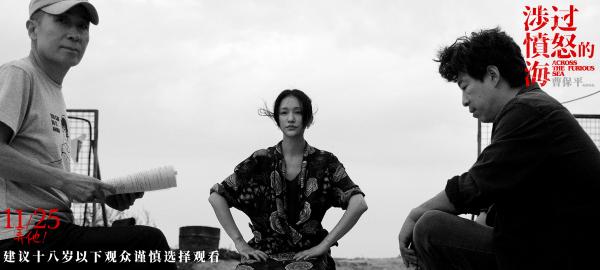 曹保平、周迅和黃渤在《涉過憤怒的海》片場