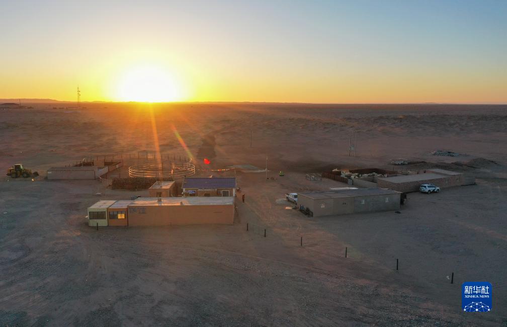 這是內蒙古阿拉善左旗烏力吉蘇木溫都爾毛道嘎查牧民朝勒門格爾勒的家(11月17日攝,無人機照片)。新華社記者 劉磊 攝