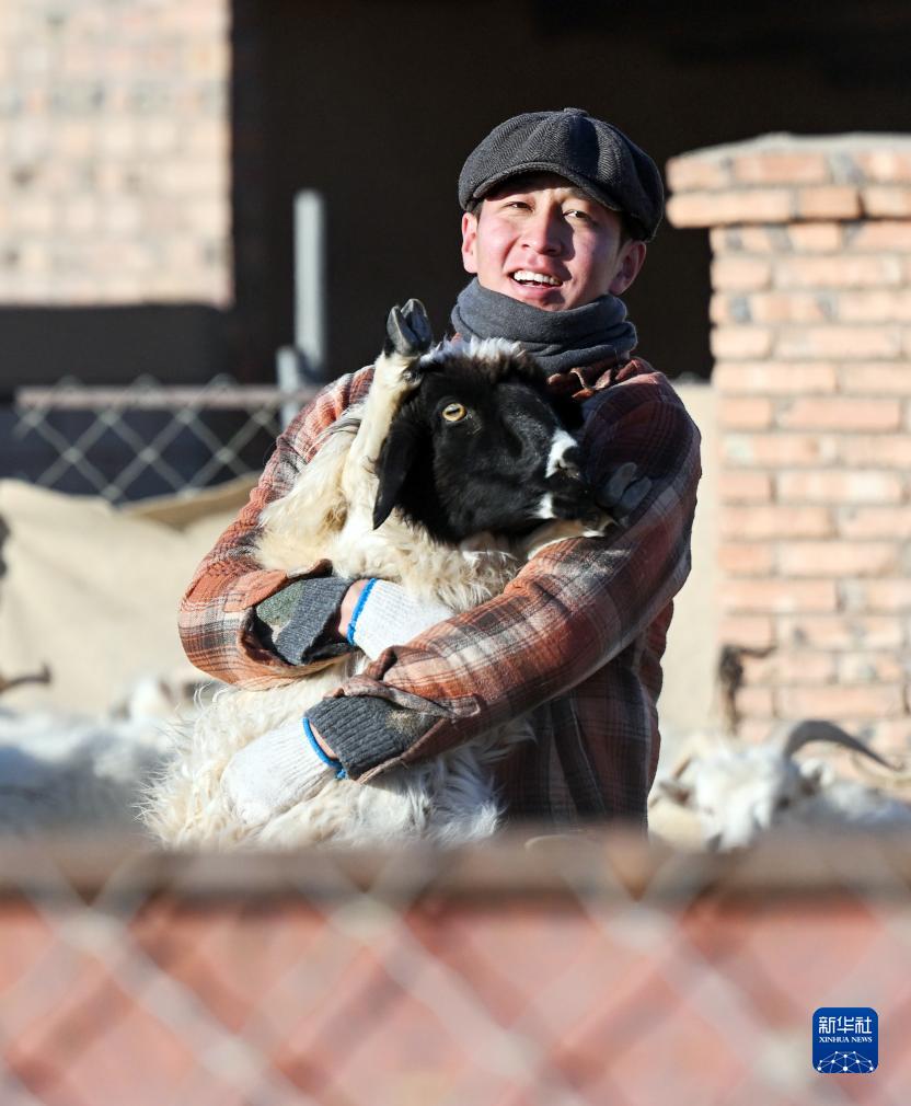 溫都蘇在羊圈里忙碌(11月17日攝)。新華社記者 劉磊 攝