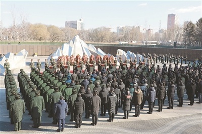 11月24日,隨著《思念曲》低回奏響,禮兵們抬起在韓中國人民志愿軍烈士棺槨繞沈陽抗美援朝烈士陵園下沉式廣場半周,緩緩走向安葬地宮,25位志愿軍烈士英靈在抗美援朝戰(zhàn)爭勝利70周年之際,回到祖國和人民的懷抱,在中華大地安息。