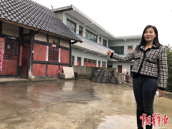 楊妞花站在一棟木屋前,向記者講述她4歲時在這里參加宴席的經歷。尋親時,她的超強記憶起了至關重要的作用。