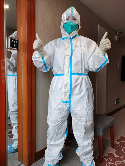王敏穿上防護服